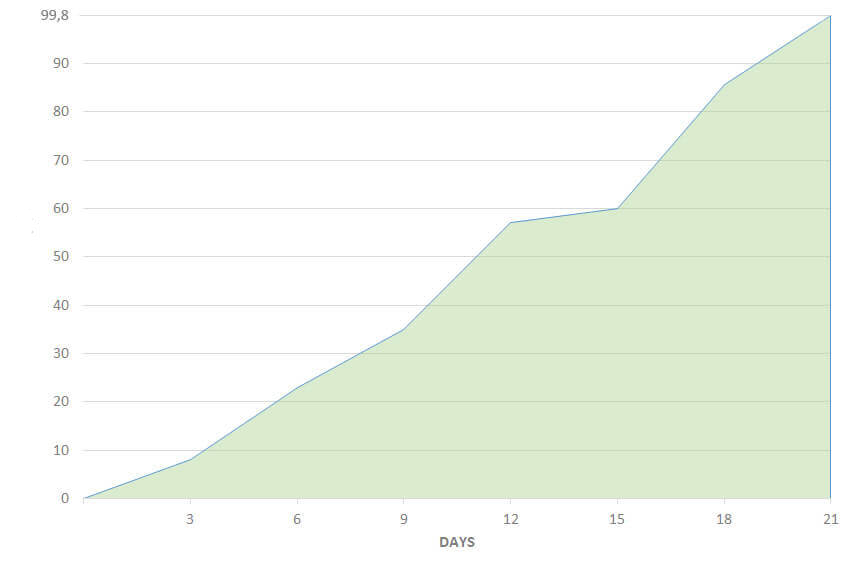 - 7 nap után stabilizálódik a glükózszintje – az étvágy normalizálódik, javul az alvás, megszűnik az állandó fáradtság és a kimerültség érzése. Koncentráltabbá és energikusabbá válsz még fizikai erőfeszítés után is.